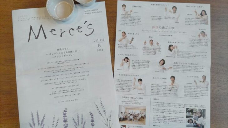 アトリエサクラ定期情報誌 ❁『Merce’s(メルセス)』2024.5月号を発行しました! 【vol.113 2024.5月号の内容】・社長コラムJumbooさんの独り言 ~グランドオープン~・アトリ […]