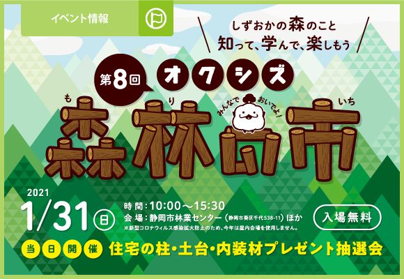 【静岡市経済局農林水産部中山間地振興課 森林・林業係よりお知らせ】令和3年1月31日に開催を予定しておりました「第8回オクシズ森林の市」ですが、昨今の新型コロナウィルス感染拡大の状況を鑑み、静岡市とオ […]