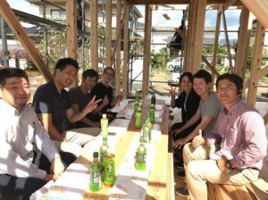 秋晴れの本日、気持ちの良いお天気の中「上棟」が行われております