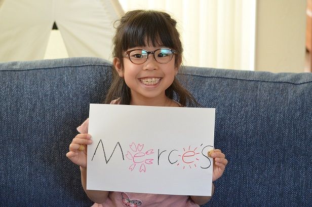 クレヨンで白い紙に「Merce’s」と描いてね!という依頼に対して、