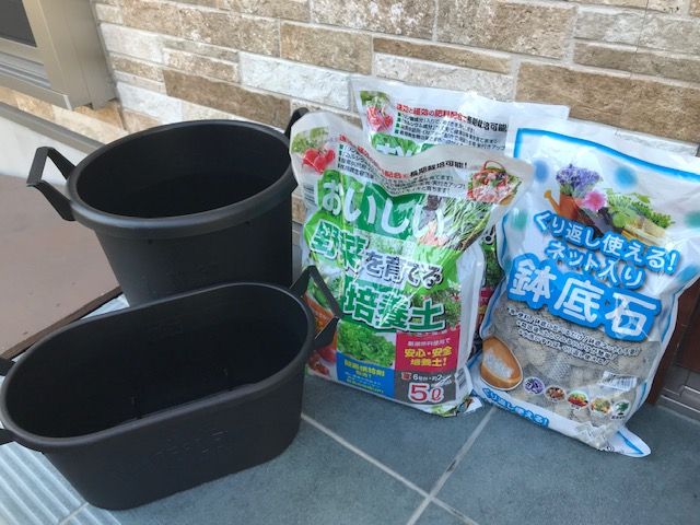 「プランター」「野菜用の培養土」「鉢底石(ネット入り)」
