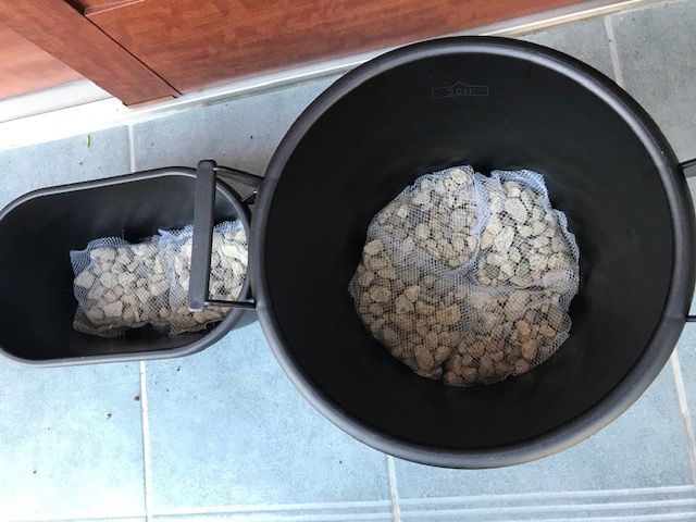 ①鉢底石を敷き詰める