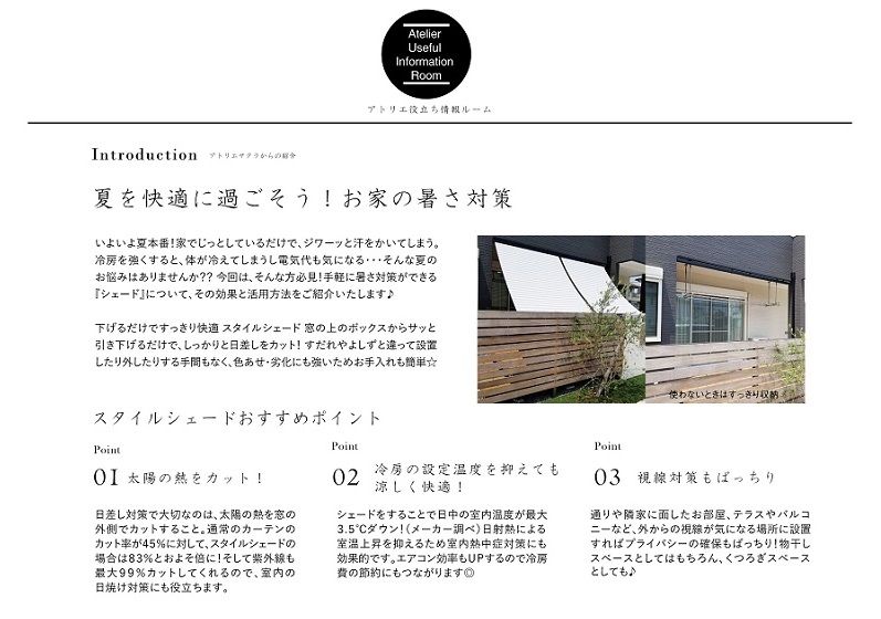 夏の暑さ対策として、『スタイルシェード』のご紹介をしています♪