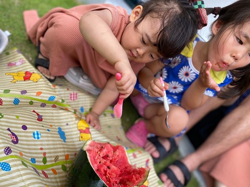 スイカ割りをしたり、花火をしたり、娘にとっては初めての経験も💡