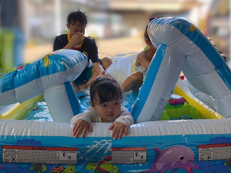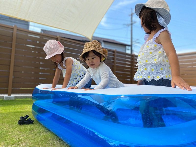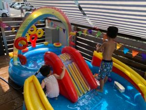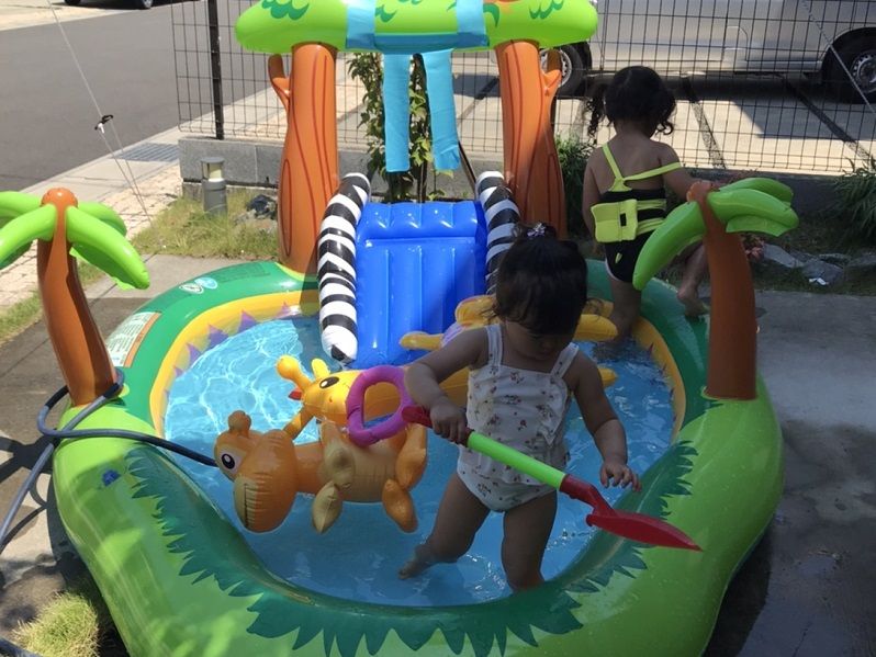 ご覧の通り、お友達とお家プールざんまいでした😊