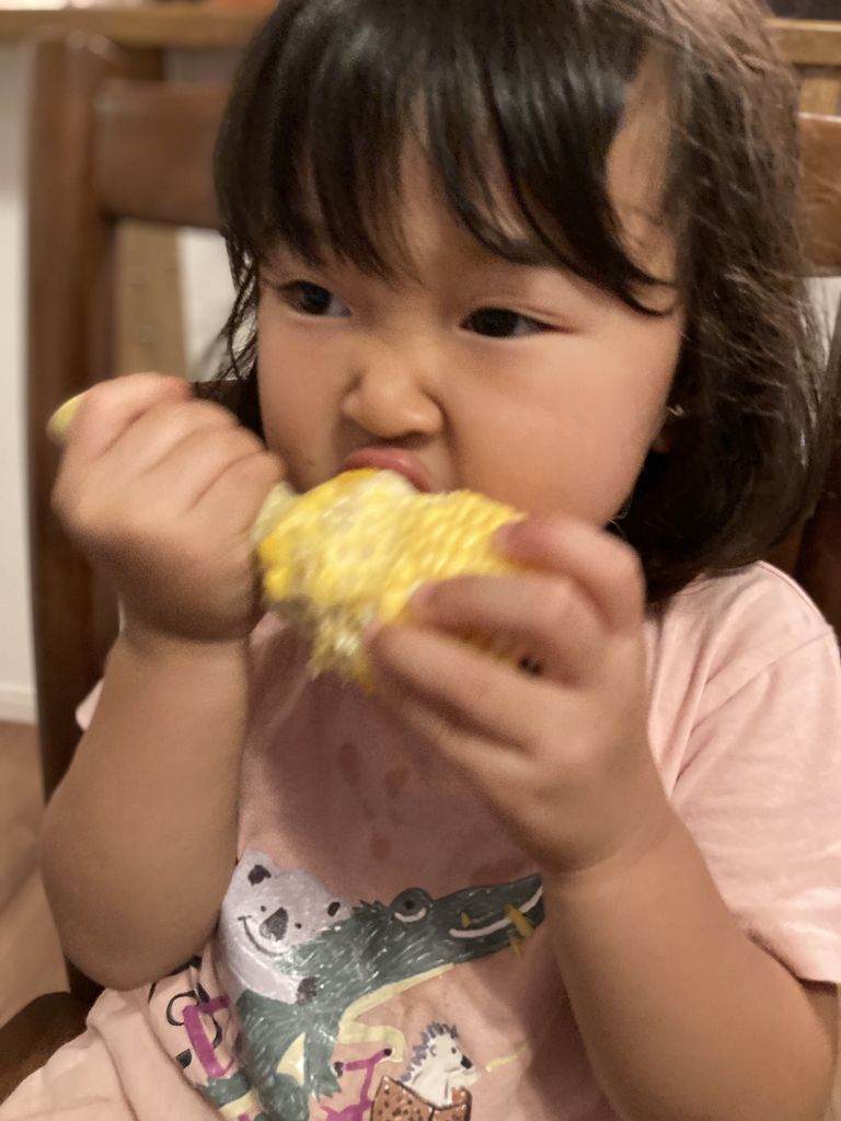 夏といえば、旬の朝採れとうもろこしが大好きな編集長ゆっこと娘ふうか。