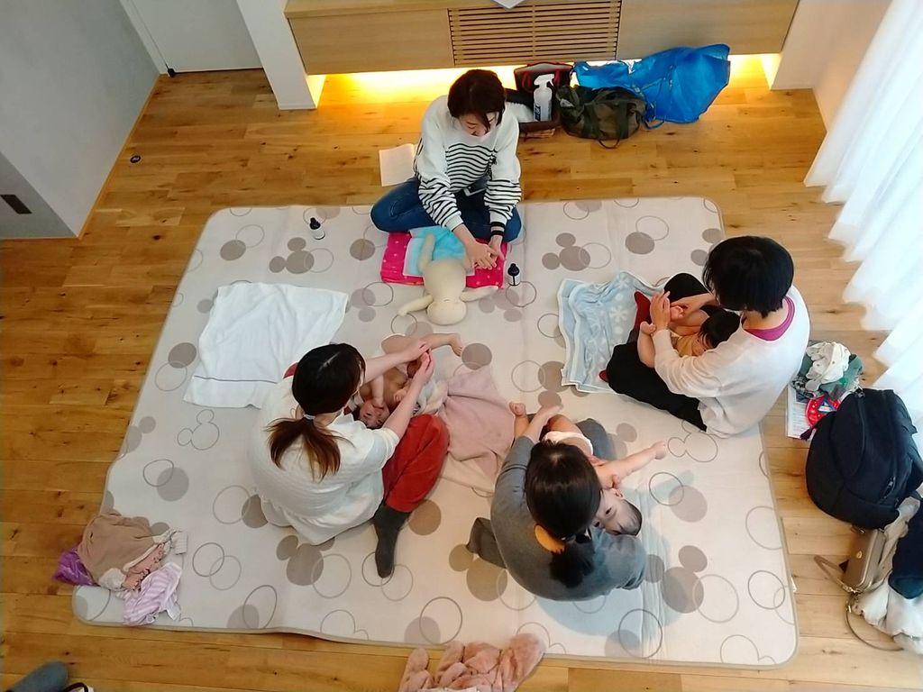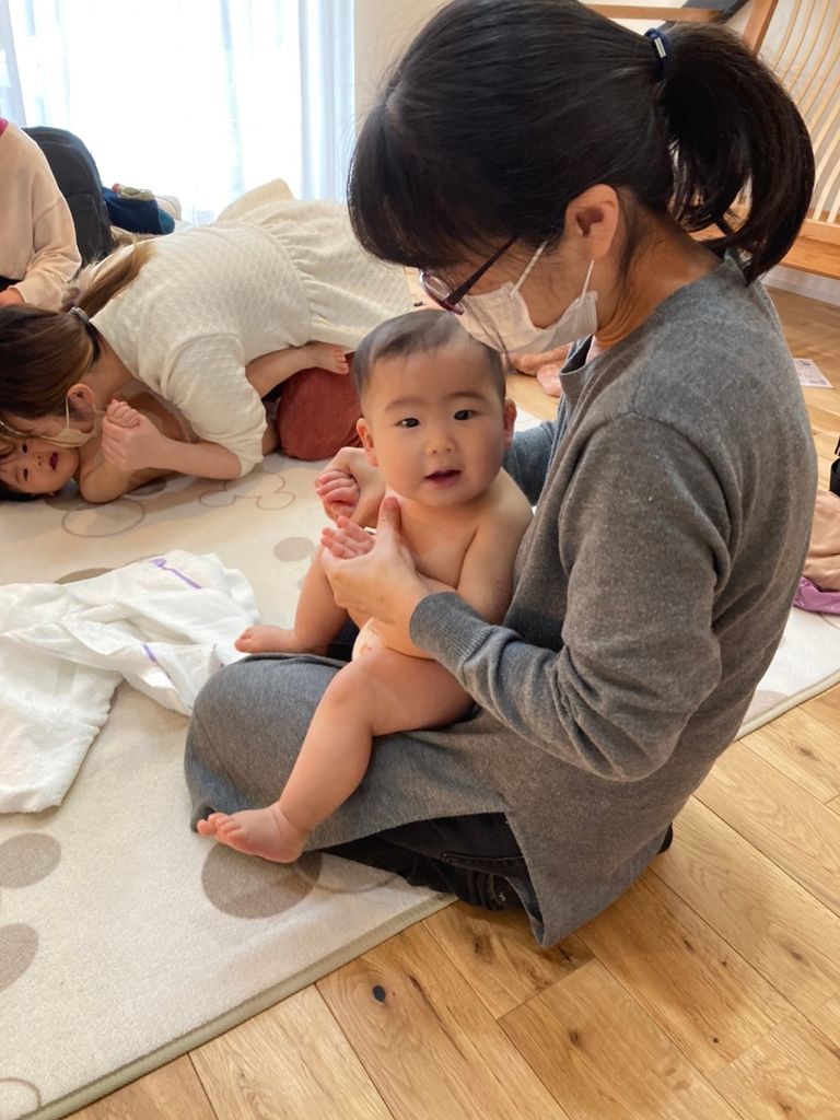 お母さんの膝の上だったり、寝転がったりしながら、お子さんとコミュニケーションを取ってマッサージしていきます