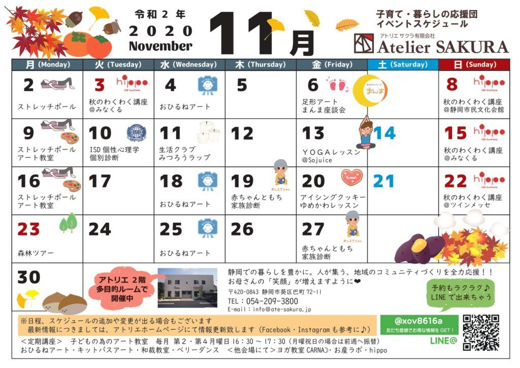 🌸ヒッポファミリークラブ ⇒ ヒッポファミリークラブ静岡市 静岡市内11月開催『秋のわくわく講座』